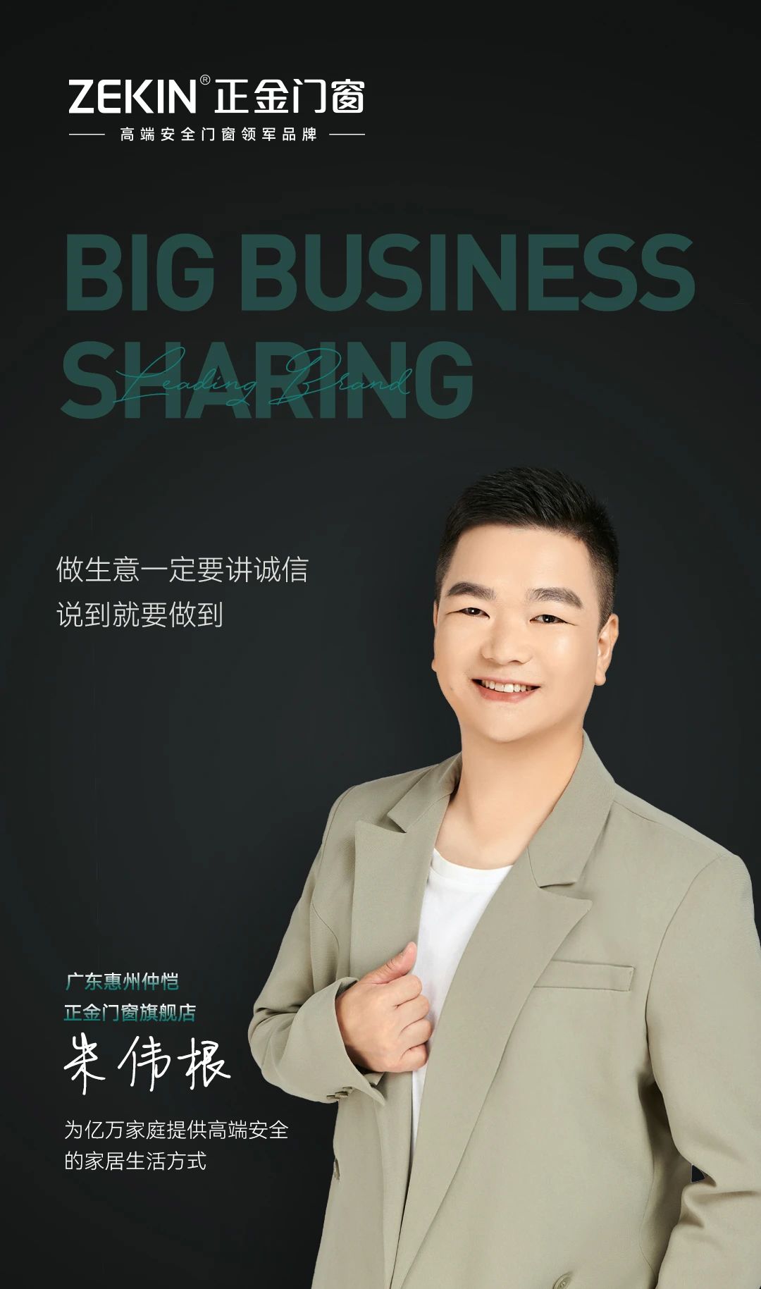 接下來,讓我們一起來傾聽廣東惠州仲愷正金門窗經銷商朱偉根先生的心路歷程和創業故事。